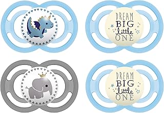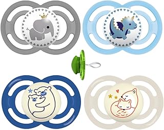 MAM Day & Night Perfect Schnuller Set im 4er-Set, 2x MAM Perfect und 2x MAM Perfect Night, für eine natürliche Zahn- und Kieferentwicklung, mit leuchtenden Schnullern, 6-16 Monate, Elefant/Drache