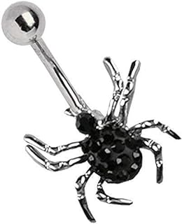 Bauchnabel Schmuck Piercing 316 l Stahl Banane 1,6 x 10 mm, Spinne mit Steinen in schwarz-schwarz