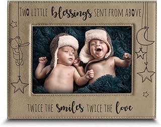 Bella Busta, Twice The Blessings From Above, Smiles, Love-Twins New Baby Gift Twin Rahmen Boy Twins Girl Kinderzimmer-Dekor-gravierter Leder-Bilderrahmen (12,7 x 17,8 cm horizontal)