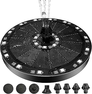 Jutai Solar-Springbrunnen für Vogeltränke mit 21 RGB-Lichtern und 900 mAh Batterie-Backup, Solar-Wasserbrunnen mit 7 verschiedenen Düsen für Aquarien, Teich, Gartendekoration