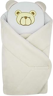 BlueberryShop Wickeldecke aus Fleece mit Kissen, Schlafsack für Neugeborene, Für Kinder von 0 bis 3 Monaten, Baby Shower, 78 x 78 cm, Creme