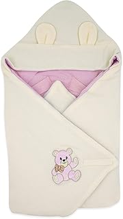 BlueberryShop Thermo Frottee Decke mit Käppchen, Wickeldecke zum Auto, Schlafsack für Neugeborene, Für Kinder von 0 bis 3 Monaten, Baby Shower, Rosa