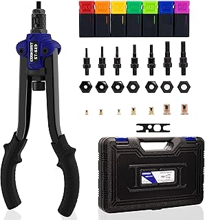 Nietmuttern-Werkzeug, 35,6 cm, Nietensetter mit M3, M4, M5, M6, M8, M10, metrisch, 6 Spanndornen und 60 Nietmuttern, arbeitssparendes Design, mit robuster Tragetasche