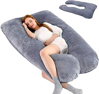 Amagoing 144,8 cm Schwangerschaftskissen zum Schlafen, U-förmiges Schwangerschaftskissen für schwangere Frauen mit Hüfte, Bein, Rücken, Bauchstütze, waschbarer Samtbezug inklusive